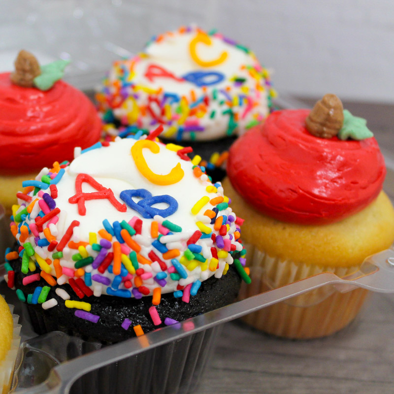 From simply iced or sprinkled, to animal shapes and fondant accents; there are a lot of creative avenues to explore when ordering customized decorated cupcakes. Flavor and icing options can be found on our menu.